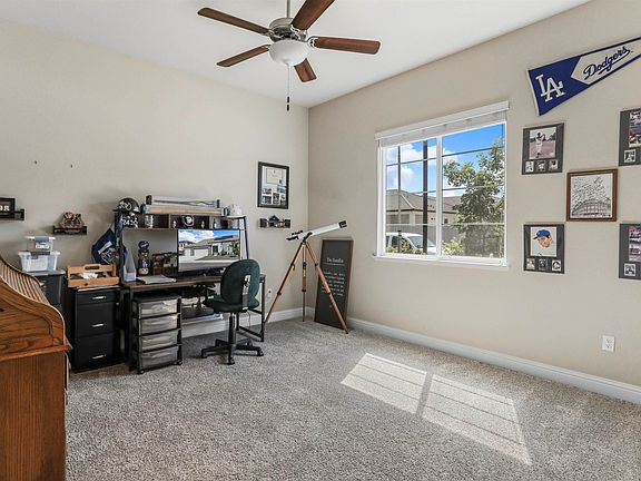 Don't miss your chance to own this exceptional 2021 Raymus-built home—designed for comfort, style, and privacy! With 4 spacious bedrooms and 3.5 baths, this dream layout features 3 bedrooms on the main level, including a private guest suite with a full bath and walk-in closet. Every bedroom has its own walk-in closet—no detail was overlooked! The bright, open living space is perfect for entertaining, with a flowing layout and a kitchen that opens to the dining and living areas, all flooded with natural light. A separate mudroom and laundry room add everyday convenience. Upstairs, a huge 960 sq. ft. loft with a built-in kitchenette offers the ultimate flex space—ideal for movie nights, a home office, or a guest retreat! Step outside to a backyard oasis featuring a covered patio, putting green, and no rear neighbors—offering rare privacy and relaxation. A 3-car garage with drive-through bay adds serious versatility.Attached solar means energy efficiency and long-term savings. Located just 2 minutes from local restaurants, shops, gyms, freeway access, and walking distance to Palmer Park—this home truly has it all. This is the one you've been waiting for