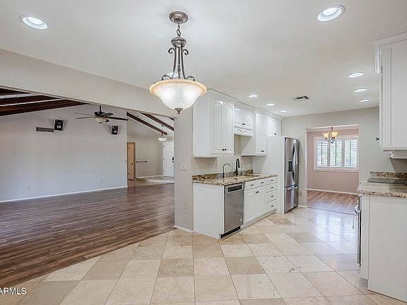 Historic charm meets modern convenience in this single-story 4-bed + den Shalimar Estates gem! Step into a spacious great room w/ vauled ceiling & elegant beams. The updated kitchen has white cabinets, granite countertops, butler area, large pantry and kitchen nook. Enjoy a formal dining area perfect for entertaining. The flexible den w/ private backyard access is perfect as an office, gym, playroom, or guest suite. The primary suite includes a walk-in shower and private exit to a oversized patio area. The low maintenance backyard Is xeriscaped with walking paths, a large covered patio, & no grass to mow. Additional features include a built-in vacuum system,new HVAC (2024) & no HOA. Prime location with quick access to shopping, dining, and freeways. See this home today!