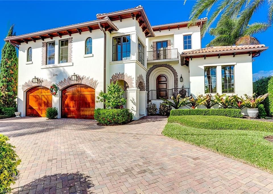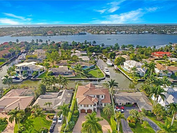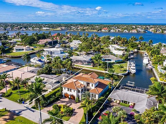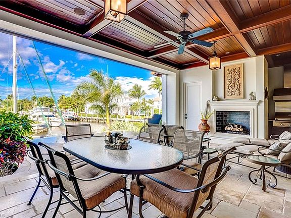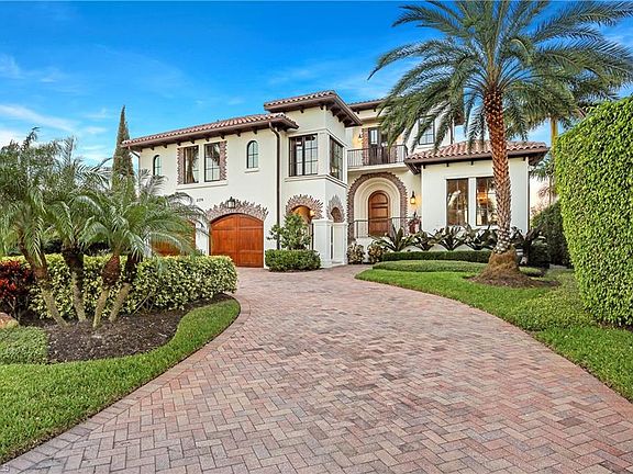 A custom Jeff Harrell Design of 4,400 square feet, featuring 4+ bedrooms with 6.5 baths. Spacious master bedroom with his and her built in closets and a luxurious master bathroom on the first floor. The office is also located on the first floor with a full bathroom. On the second floor are two bedrooms, both have full baths and closets with built-ins. On the third floor, is an Au Pair living area. All windows are hurricane proof and the elevation of the home is above fema. The outdoor living space is to die for with a salt water infinity pool, spa, built in grill, fireplace, electric roll down screen, shutters and pool bath. The home has western rear exposure so you never miss a Naples sunset! The high end finishes in this home are numerous! You have custom ceiling detail, granite countertops, top of the line appliances such as, Wolf and Subzero, hand-distressed cabinetry with wood and stone floors etc. This stunning home sits on a t-view with easy turn-around ability and amazing water views, in a great boating community that has direct access to the Gulf of Mexico!