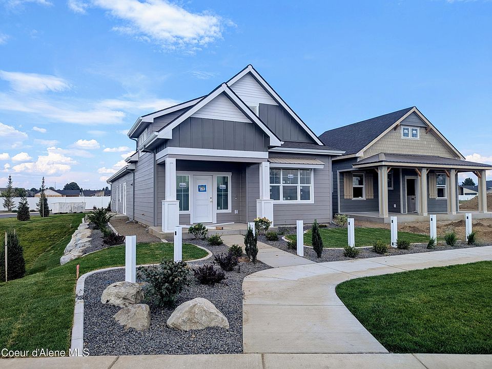Welcome to the Cottages at Cholet Park in CDA Place! Step out your front door to Cholet Park, with pickleball courts, play structures and tons of greenspace! The Monterey is a cottage style home with 1,664 sqft, 3 bedrooms, 2 bathrooms and a 2 car rear-load garage. This home has a spacious bonus room for an office, hobbies, or extra bedroom for guests. The main floor offers a large kitchen with pantry and island, a functional secondary room that is perfect for a bedroom, office or den, and the master suite features a large walk-in closet. The laundry room, conveniently located off the garage, doubles as a mud room. Coeur d'Alene Place offers a proud tradition of neighborhood integrity, featuring thousands of trees, acres of parks and miles of walkways connecting you to the Kroc Community Center and downtown Coeur d'Alene. Fireplace is electric. This home is under construction with targeted completion in December 2025. Stock photos show a previously completed home.