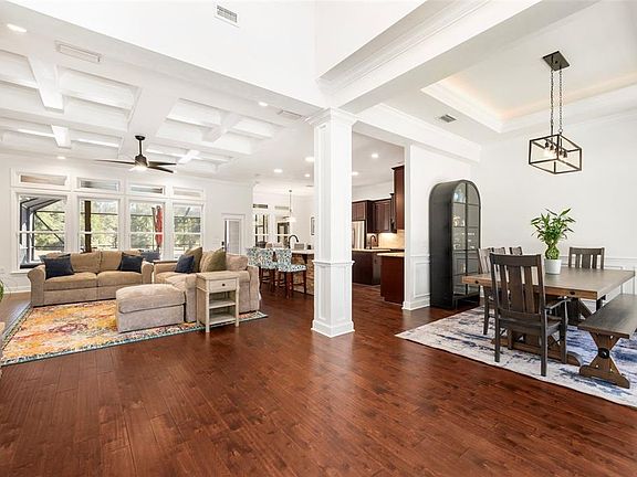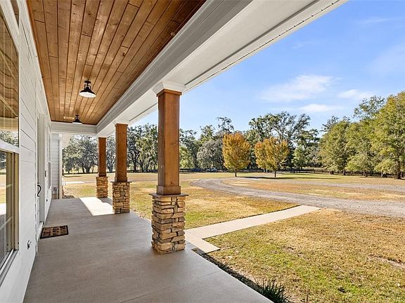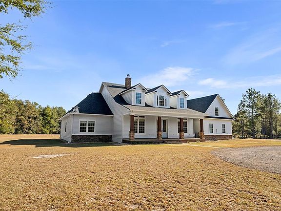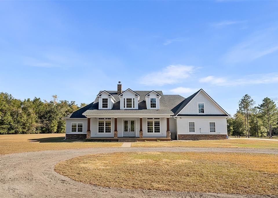 Picturesque and private, this Southern Living–inspired estate sits on 16+ fully fenced acres and offers the perfect blend of luxury, comfort, and countryside charm. Built in 2015, the custom 3,300+ SF residence features 5 bedrooms, 4 full bathrooms, and a dedicated study/office, all arranged in a thoughtfully designed three-way split floor plan. A grand double-door entry with custom stained-glass accents opens into bright, spacious living areas, including an oversized great room with a floor-to-ceiling stacked-stone wood-burning fireplace. The gourmet kitchen is an entertainer’s dream, showcasing dual islands, multiple prep zones, abundant custom cabinetry, granite countertops, and a seamless flow into both the great room and formal dining room. Rich details elevate every space with hand-scraped wood flooring, plantation shutters, wainscoting, crown molding, cased openings, and coffered and tray ceilings. The luxurious owner’s suite features a stacked-stone accent wall, claw-foot tub, dual vanities, an oversized walk-in shower, and a grand custom closet with center island. All guest bedrooms are generously sized and include walk-in closets in most rooms. Extensive recent upgrades in 2024 include a new HVAC system, fresh interior and exterior paint, new front entry doors, upgraded 500-gallon propane tank, new gas pool heater, Starlink high-performance internet, new screens on the pool enclosure, and new carpet in two bedrooms. A new roof in 2021 and as well as solar panels provide outstanding energy savings (average monthly bill from Clay Electric is $55), with capacity for additional panel expansion. This home is also equipped with a whole-house 22 kW generator ensuring year-round peace of mind. Enjoy Florida’s outdoor lifestyle with the covered paver lanai, screen-enclosed pool with stone waterfall, and plenty of space for future outdoor kitchen addition. The property is fully fenced and ideal for horses/livestock, boat/RV parking or the addition of a barn, workshop, or detached garage. Offering both serenity and convenience, this estate sits just minutes from shopping and dining on historic Main Street High Springs and nearby Alachua, with the University of Florida, UF Health and HCA hospitals approximately 30 minutes away. A rare opportunity to own a turnkey country retreat with modern comforts and endless possibilities.