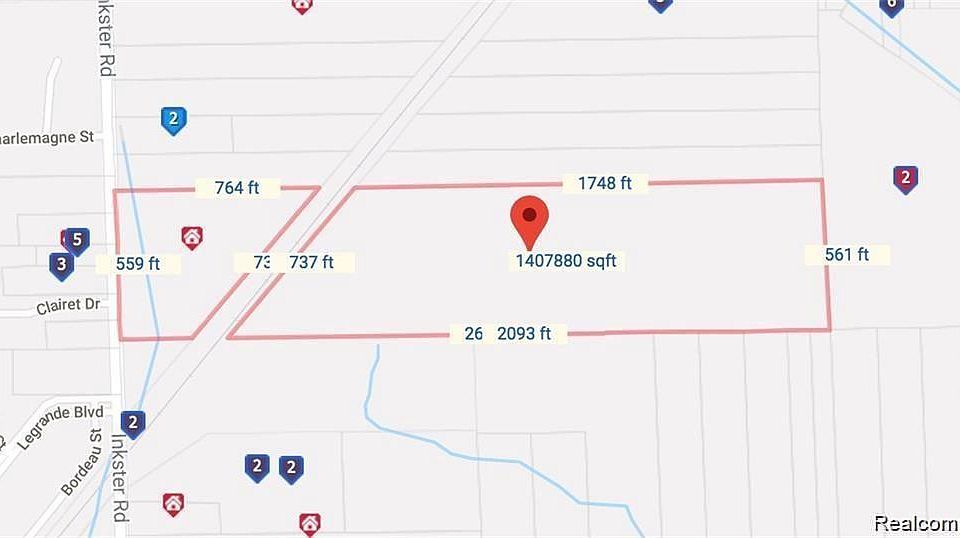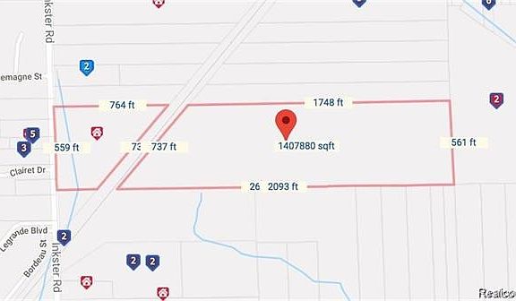 Build your dream home on this 32 Acres of Land that can be used for just about anything and ZONED RESIDENTIAL. Located on Inkster Rd in Brownstown. Front 6 acres is a prime area to build a new home! Septic and well needed. There was an artesian well on property prior to demolition of the home. Property has easement for railroad. BATVAI
