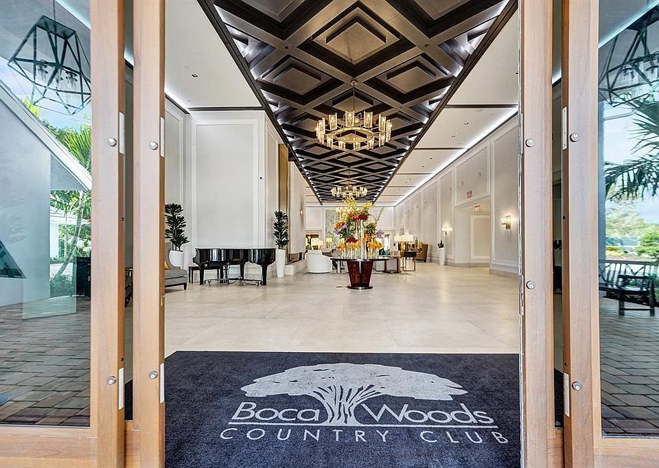 Located in sought after Boca Woods Country Club on Old Bridge Trail. Property features three bedrooms, three and one half baths, spacious layout, two car plus golf cart garage, pool area overlooking an exceptional view with vistas of the newly designed Rees Jones Woods course overlooking a spectacular lake views. BWCC offers 2 golf courses, pickleball, tennis, fine and casual dining, fitness center, spa, game room and much more. Mandatory membership $120,000, see attached yearly fees & dues