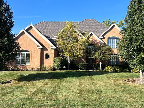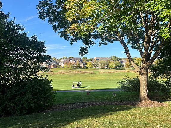 Welcome to luxury living in the prestigious Ivanhoe Estates, an exclusive, gated golf course community. This executive-style residence offers more than 4,200 square feet of refined living space, blending timeless elegance with some thoughtful modern updates. A stately brick exterior is enhanced by a new composite roof (2024), asphalt driveway, and an oversized three-car garage with epoxy flooring. Perfectly positioned along the 2nd fairway of the Prairie Course, the home captures breathtaking views of the rolling greens. Step inside to a dramatic two-story foyer that sets the tone for the home's sophisticated interior. On either side of the entry are spacious living and dining rooms with plantation shutters and crown molding, creating a warm yet elegant ambiance. The soaring two-story family room, awash in natural light, showcases breathtaking golf course views and features a beautiful brick fireplace as its stunning focal point. Directly adjacent, a spacious private office offers the perfect work-from-home setting-where inspiring fairway views make productivity a pleasure. The updated kitchen (2019) is a chef's delight, featuring granite countertops, painted cabinetry, a stylish backsplash, and high-end KitchenAid stainless steel appliances-including refrigerator, cooktop, dishwasher, microwave, and oven. A center island with seating, pantry, and built-in desk area combine functionality with elegant design, creating a warm and inviting space for both everyday living and entertaining. Centrally located, a secondary staircase offers effortless access to the upper level, enhancing the home's flow and convenience. The adjoining casual dining area opens through glass doors to a large deck, ideal for outdoor dining and entertaining. A well-appointed first-floor laundry room with sink adds everyday practicality. Upstairs, the expansive primary suite offers a peaceful retreat with plenty of space for a sitting area. The bathroom features dual vanities, a Jacuzzi tub, a separate shower, and a generous walk-in closet. Three additional light-filled bedrooms complete the second floor-one with its own en-suite bath, and the other two sharing a spacious hall bath. The English basement offers an additional 2,200 square feet of versatile living space. Highlights include a large great room with brick fireplace, a built-in counter and serving area ideal for entertaining, a wine cellar, a full bath, and abundant storage. Step outside to your private oasis. Lush landscaping, a tranquil waterfall/ koi pond, and panoramic fairway views create an unforgettable setting. Enjoy the outdoors on the expansive deck, a brick patio with fire pit, and an additional natural stone seating area-perfect for relaxing or hosting gatherings. Additional features include a security system, water treatment system, and outdoor sprinkler system, ensuring both comfort and peace of mind. This exceptional home presents a rare opportunity to enjoy elegance, comfort, and an unbeatable setting in Ivanhoe Estates.