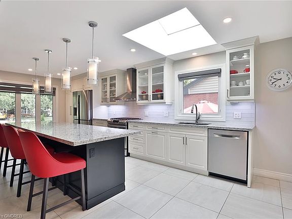 Location, Location, Location. Highly desirable bungalow that's been incredibly renovated and located on quiet Central Burlington mature neighbourhood that has quick and easy access to everything downtown Burlington has to offer. Not all renovations are created equal. This one has been done inside and out with incredibly high quality finishes. The stunning custom kitchen has quality cabinetry with wood dovetail slow close drawers, massive island with quartz counters that has seating capacity for 6 stools, glass tile backsplash, touch faucet, and high end stainless steel appliances. Truly an incredible amount of cabinet space. The great room is flooded with natural light from the large windows and skylight, and has a ton of functional task lighting with LED pot lights, pendants, and under-mount cabinet lighting. Control mood lighting and privacy with high-end blinds. There are stunning hard wood floors throughout the main floor, and two beautifully renovated bathrooms (main bath with heated floor). The curb appeal is incredible with a extensive amount of hardscaping and exterior stone work. This level of quality isn't often seen with everything chosen by a local designer. Roof (2018), majority of windows (2018), furnace (2018), updated wiring (2018), black soffit and over a dozen exterior pot lights (2018). The backyard is an entertainers dream with incredible stone patios, and in-ground pool. There's a lawn irrigation system (2018), new fence (2018), and a incredible amount of interlocking stone. Truly one of the prettiest houses you'll see as you pull into the driveway. All of this in an incredible neighbourhood with easy access to the Hwy, Go train, the lake, and all the shops and restaurants downtown Burlington has to offer. This is the one you've been waiting for.