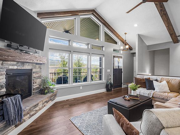 The living area is cozy yet sophisticated, featuring hardwood floors and a stone gas fireplace. Culinary dreams come to life in the modern kitchen, complete with a farm sink, granite countertops, a large pantry, and a rustic wood bar. Retreat to your master suite, boasting a luxurious bath with a soaking tub, double vanity, and walk-in shower... The lower level presents another versatile living area, a kitchenette, and an additional bedroom. A whimsical room under the stairs is perfect for kids and offers a unique play space. Experience the comfort of 9-foot ceilings throughout the home, including the basement, and the convenience of solid core doors and a laundry chute. An extra-large 3-car garage offers ample storage and parking, while an RV pad with a cleanout station for temporary stay over for guests or trips to and from. The home has a water softener and reverse osmosis system for optimal water quality. Additionally, 534 square feet of unfinished basement storage offer endless possibilities. A negotiable furniture package could make your move even more accessible. Just a short drive to Zion National Park, this home is an outdoor enthusiast's dream come true. The seller wants a lease back until their home is completed, but it is not a deal breaker.