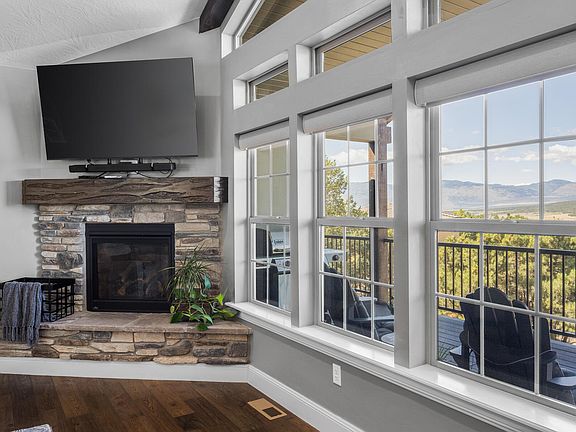 Nestled near the natural beauty of Kolob Canyon, Kanarra Falls, and Brian Head Ski Resort, this immaculate, newer home offers an unparalleled living experience on a sprawling 2-acre lot. Enjoy the outdoors on your wrap-around deck, shaded by mature evergreen landscaping and a charming pergola. Abundant windows frame breathtaking views, complementing the open floor plan accentuated by vaulted ceilings and exposed wooden beams.