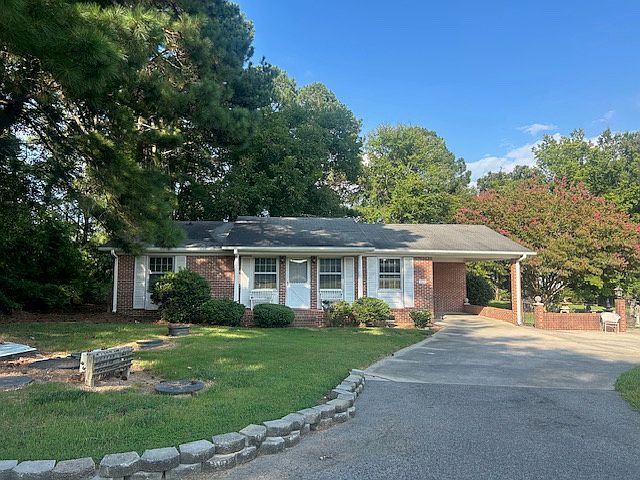 Freshly painted, brick house with a carport, shared driveway, sunroom, 2 separate dining rooms and a wood burning fireplace. Wood and vinyl flooring throughout, stand up shower in one bathroom and a tub/shower in the other. Includes stove, refrigerator, dishwasher and washer/dryer connections. Central Electric HVAC, well & septic. Minimum 1 year lease, must pay security deposit in full, no partial payments. Must pre-qualify prior to viewing.