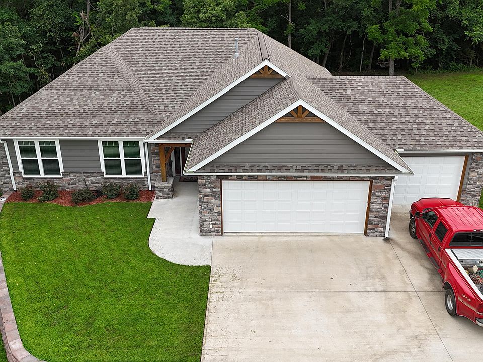 Enjoy lake living with ease--this spacious ranch-style home is just a short golf cart ride to a 3rd party boat slip at nearby community dock and only one mile from the heart of Shell Knob's shopping and amenities. This home is wheelchair/walker accessible. Step inside to an expansive entry that opens to a large living room with a see-through fireplace shared with a cozy sitting room overlooking the covered back deck. The open-concept kitchen and dining area is designed for gatherings, featuring a generous island with quartz countertops, tile backsplash, and a floor-to-ceiling pantry. The oversized primary suite includes a tray ceiling and a large bath with double vanity, walk-in shower, and a walk-in closet with built-ins. Main-floor laundry with storage and a 3-car garage finished with epoxy and decorative flake flooring complete the package.