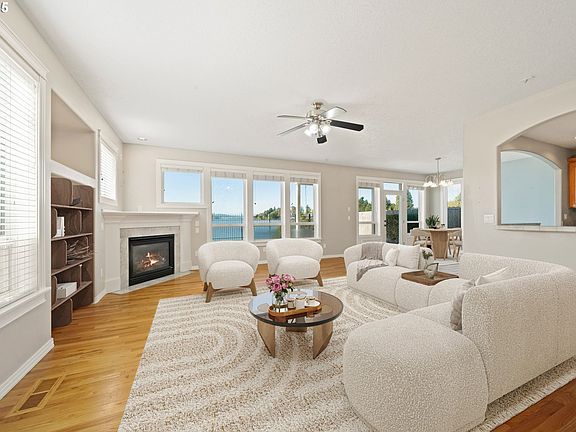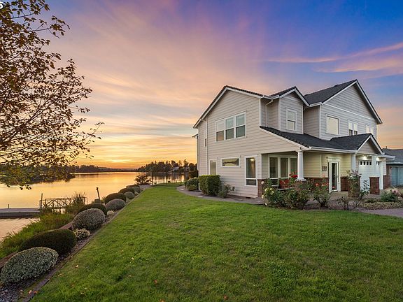LAKEFRONT LUXURY MINUTES FROM PORTLAND – FAIRVIEW LAKE AT ITS FINEST. Discover a rare opportunity to live on the point of Fairview Lake, just 15 minutes to PDX and downtown Portland. This 4 bedroom, 3.5 bath, 3,320 square foot lakefront home on a 0.36 acre lot blends Northwest comfort with stunning outdoor living. Enjoy panoramic lake views, breathtaking sunsets, and direct access to boating, fishing, swimming, and paddleboarding from your private dock. Designed for year-round enjoyment, the home features a main floor primary suite, a second expansive lakefront suite upstairs with a private deck, hardwood floors throughout, and a light filled great room and open kitchen that bring the outdoors in. Step outside to a fenced lakeside yard surrounded by nature and wildlife including geese, herons, and eagles along the shoreline. Whether relaxing by the water or entertaining under vibrant skies, every day feels like a vacation. Located near the Columbia River Gorge, Mt. Hood recreation, and premier shopping at Columbia Gorge Outlets, this property offers the perfect balance of tranquility and convenience. Experience the best of Fairview Lake waterfront living, a peaceful retreat just minutes from the city.