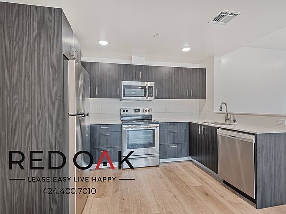 ~1 Month FREE~ Serene and Spacious One Bedroom in a Luxurious New Building with Private Balcony, Stainless Steel Appliances, Amazing Amenities, Washer, Dryer, and Secure Parking Included ~ In Prime Rampart Village! *MOVE-IN SPECIAL* **Resident will receive a one-time credit of 1 Month FREE off of the Market Rent Price of $2,250, on approved credit. The net effective rent shows the savings over the entire 1-month lease term. The advertised price is based on the NET EFFECTIVE RENT.* Unique Features: Bright & Airy: Large windows highlight hardwood-style floors & scenic views. Private Balcony: Perfect for relaxing or entertaining. In-Unit Storage: An ample closet with mirrored sliding doors. Climate Control: Central heat & A/C. Modern Kitchen: Hardwood cabinets, quartz countertops, and stainless steel appliances. Spa-Inspired Bathroom: A well-lit mirror, vanity cabinets, & soaking tub/shower. Utilities Included: Gas, trash, water, & sewage services are included. In-Unit Laundry: Washer & dryer included. Included Parking: One Dedicated space for your vehicle. Pet Retreat: Bring your companion for a minimal monthly pet rent. Fitness Center: Stay in shape with our community gym. Rooftop Lounge: Enjoy fresh air, sunshine, socializing, studying, or dining outdoors. Fantastic Location: Experience Hollywood's energy and nightlife, with peaceful charm nearbyjust minutes from LA Live and Staples Center. This one won't be on the market very long! Available for an immediate move-in. LEASE TERMS: One Year Lease Photos may not reflect the exact available unit. Availability is not guaranteedplease verify all details. Square Footage is approximate. Showings may not be 1-on-1. All information must be validated on Red Oaks Website since 3rd party websites can feed incorrect information. Pricing and availability are subject to change without notice and may vary between similar units. **All applicants receive equal consideration; we follow all Fair Housing laws.*