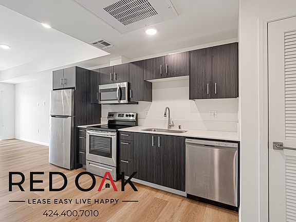 ~1 Month FREE~ Stunning Studio with Stainless Steel Appliances, Lovely Floors, Fantastic Amenities, In-Unit Washer/Dryer, and Parking Included ~ In Prime Rampart Village! *Move-In Special* **Resident will receive a one-time credit of 1 Month FREE off of the Market Rent Price of $1,950, on approved credit. The net effective rent shows the savings over the entire 1-month lease term. The advertised price is based on the NET EFFECTIVE RENT.* Unique Features: Bright & Airy: Large windows highlight hardwood-style floors & scenic views. Private Balcony: Perfect for relaxing or entertaining. In-Unit Storage: An ample closet with mirrored sliding doors. Climate Control: Central heat & A/C. Modern Kitchen: Hardwood cabinets, quartz countertops, and stainless steel appliances. Spa-Inspired Bathroom: A well-lit mirror, vanity cabinets, & soaking tub/shower. Utilities Included: Gas, trash, water, & sewage services are included. In-Unit Laundry: Washer & dryer included. Included Parking: Dedicated space for your vehicle. Fitness Center: Stay in shape with our community gym. Rooftop Lounge: Enjoy fresh air, sunshine, socializing, studying, or dining outdoors. Fantastic Location: Experience Hollywood's energy and nightlife, with peaceful charm nearbyjust minutes from LA Live and Staples Center. This one won't be on the market very long! Available for an immediate move-in. LEASE TERMS: 1 Year Lease Pictures and descriptions are of EXACT unit Square Footage is approximate. Showings may not be 1-on-1. All information must be validated on Red Oaks Website since 3rd party websites can feed incorrect information.