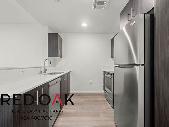 Remarkable, Recently Built One Bedroom with Private Balcony, Stainless Steel Appliances, Incredible Amenities, Washer, Dryer, and Secure Parking Included! In Prime Rampart Village! **THIS UNIT IS CURRENTLY OCCUPIED* MULTIPLE UNITS AVAILABLE Experience Unrivaled Luxury at Lux Los Angeles! Your Exclusive Retreat of Convenience: Welcome to Lux Los Angeles, a recently crafted luxury haven nestled in the heart of the San Fernando Valley. Immerse yourself in an extraordinary living experience, where the fusion of modern amenities and classic sophistication creates an unparalleled sanctuary. Revel in the abundance of natural light flowing through expansive windows and savor the convenience of brand-new stainless steel appliances, Grohe plumbing fixtures, in-unit laundry, and sprawling balconies*. Multiple units await, offering diverse floor plans and price points. Stylish One-Bedroom Sanctuary: Uncover your chic sanctuary with beautiful hardwood vinyl floors, ample natural light, and contemporary recessed lighting. Central heat and air conditioning ensure year-round comfort. The open floor plan seamlessly connects living, dining, and kitchen areas, leading to your private balcony through a sliding glass door, offering breathtaking views. Culinary Excellence in the Gourmet Kitchen: Indulge your culinary desires in a kitchen equipped with new stainless steel appliances, abundant hardwood cabinets, top-of-the-line quartz counters, and an elegant backsplash. An expansive breakfast bar invites casual dining. Cozy Bedroom Oasis: Retreat to the cozy bedroom featuring a sunny window, a walk-in closet with custom built-in organizing solutions, and a large sliding glass door providing access to your private balcony. Enjoy the overhang that shields you from the elements while providing fresh air and picturesque views. Luxurious Bathroom Haven: Pamper yourself in the luxury bathroom with a large soaking tub and shower combination, built-in shelving, a spacious vanity with extra cabinet storage, and a generously sized, well-lit mirror. Seamless Living Comfort: Discover the convenience of having your own washer/dryer for effortless laundry experiences. Secure Parking Privilege: Relish the assurance of a designated parking spot in a well-maintained lot, complete with EV spaces for electric and hybrid vehicles. Pet-Friendly Haven: Pets are welcomed on an individual basis, ensuring a personalized and accommodating approach. Premier Building Amenities: Lux Los Angeles boasts top-of-the-line amenities, including a captivating cabana-lined sun deck with panoramic views of the Hollywood sign, an outdoor yoga deck, a state-of-the-art fitness center, and recreation space. Beautifully landscaped walking paths with a dog run create a serene environment, while the online tenant portal simplifies rent payments and maintenance requests. Ideal Locale for a Vibrant Lifestyle: Located near Shatto Park Recreation Center, various businesses, and restaurants, Lux Los Angeles provides the perfect setting for a vibrant and luxurious lifestyle. Make Unparalleled Luxury Your Everyday Reality - Available for Immediate Move-In! LEASE TERMS: One Year Lease Pictures and descriptions are of a Model Unit Floor Plan and Details may vary Square Footage is approximate. Showings may not be 1-on-1. Listed pricing and special offers are only valid for new residents. Pricing and availability are subject to change at any time. Red Oak does not warrant or represent that image renderings on this website are an accurate representation of every floor plan available at the Property. Floor plans may vary unit by unit and by location at the Property. Please contact the Leasing Office to schedule a tour of the Property and the particular unit you are interested in. Pricing and availability are subject to change at any time.