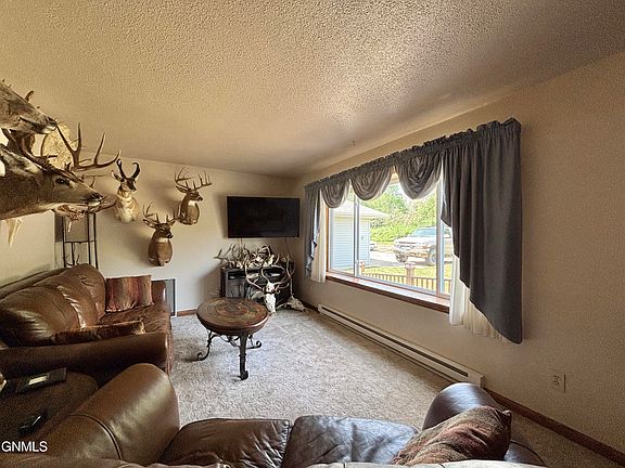 Small town living and big country feels is what you get with this property. Situated on 3 city lots equaling almost half an acre, you won't feel like you're in town. The main level of the house has the living room off the front door, primary bedroom with an ensuite bathroom, bedroom number 2 and bathroom number 2 with the washer and dryer. The kitchen has custom cabinetry with pull out drawers. Dining area has a wood burning fire place and a sliding door that leads to 1 of 3 maintenance free decks. The basement has a rec room, one bonus room that could be used as an office, 1 nonconforming bedroom, bathroom and 2 generously sized storage rooms. Outside you'll find a detached 28x32 heated double stall garage in addition to a 32x32 shop! The shop has a front and back overhead garage door allowing you to pull through. Perfect for storing your boat, camper, or cars! One half of the shop is insulated and heated ensuring year round climate control.