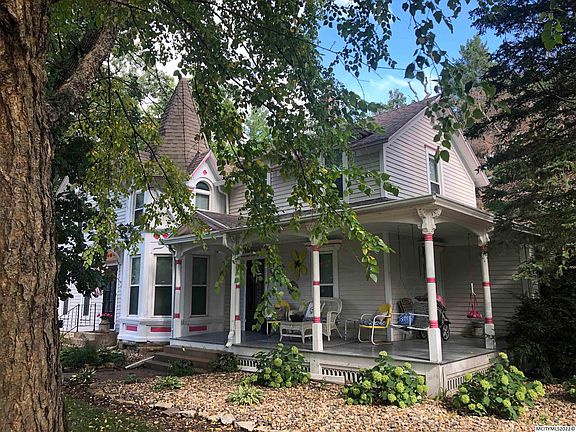 Victorian Architecture gem located within walking distance from Mason City's revived historic downtown. Extensive restoration and modern updates including master crafted custom kitchen, complete bathroom updates, thermal windows, main floor family room with Franklin fireplace and easy access doors to the private, fenced rear yard. This home has been exceptionally maintained and features large room sizes including each of the 5 bedrooms. Bedrooms have nice sized closets (each floor has a master bedroom and some of the bedrooms could be used as craft rooms or even a study/office with separate entrance). The upstairs master also features a peaceful turret sitting/reading room. Directly off the kitchen is a enclosed porch to enjoy those long summer nights, BBQ, and access to the private backyard. Dual front door entrances in case you want to split the house for 2 families or an office and family.