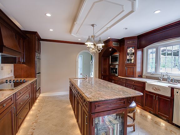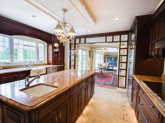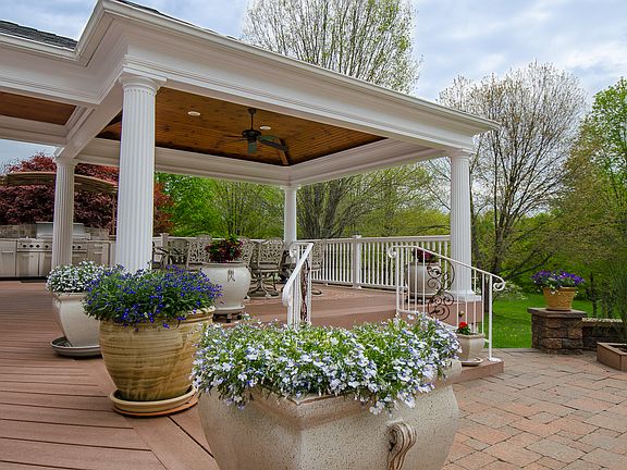 Nestled on a hill thru a private gated drive, this secluded home provides a complete sense of tranquility. Grab a blanket and hot chocolate to sit by the fire on your private patio. Fall and winter entertaining is easily achieved with open interior spaces allowing for an easy flow. Invite your guests or family to stay the night or weekend providing them with their own private space and separate entrance. Superior outdoor kitchen, multi-level covered decking and spa area with surround sound for tv and stereo systems all outside. Equally impressive, the meticulously kept home is equipped with a visually stunning kitchen with Miele appliances, granite, and effective lighting. The first floor master suite includes Italian marble his/hers baths and library/office. A 500 bottle wine cellar, media center with bar is all on the lower level.