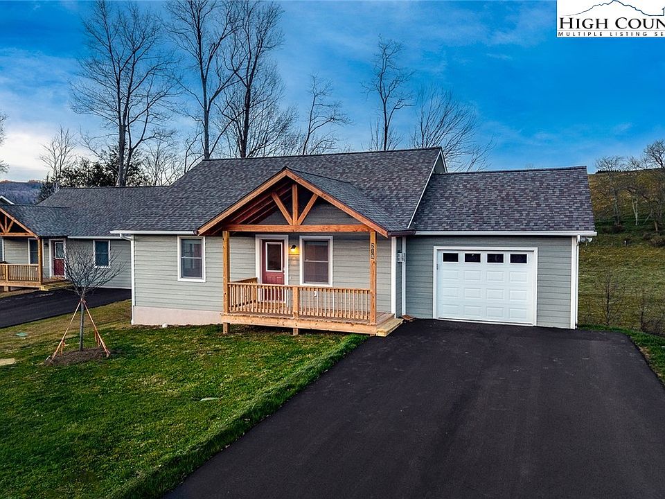 Come explore this inviting 2-bedroom, 2-bath mountain townhome located just minutes from downtown Boone and Appalachian State University. Nestled in a quiet community near Brookshire Park, with access to the Boone Greenway Trail system. Other local attractions nearby include Rocky Knob Bike Park and Booneshine Brewery. This home places you right in the heart of Boone’s best outdoor and recreational amenities. Step inside to an airy, open-concept living room featuring vaulted ceilings and a cozy gas fireplace, seamlessly flowing into the kitchen and adjoining laundry room for effortless everyday living. Both bedrooms offer ensuite bathrooms and walk-in closets, providing comfort, privacy, and convenience for residents and guests alike. Other units in the community include a half-bath, while this unit features an extended full primary bath. Enjoy peaceful outdoor living from either the front or back porch, with the rear porch overlooking a serene Christmas tree farm—a perfect setting for morning coffee or evening relaxation. An attached garage offers valuable parking and extra storage space. The crawlspace has been encapsulated and equipped with a dehumidifier. With short-term and long-term rentals permitted, this property is great for full-time living, a student residence, a mountain getaway, or an investment Property. Discover mountain living with convenience, charm, and endless possibilities.