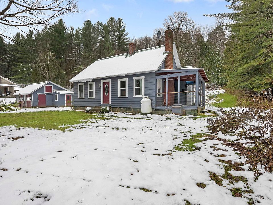 Welcome to this lovingly maintained four-bedroom Cape situated on a picturesque one-acre lot just minutes from the conveniences of Barton Village. Warm, inviting, and full of character, this home offers the perfect blend of charm, comfort, and practicality. The main level features an adorable eat-in kitchen—ideal for cozy morning breakfasts, comfortable living room with a gas fireplace, plus a den with built-ins that makes an excellent home office, library, or creative workspace. Off the living room, a covered porch provides the perfect spot to grill, unwind, and enjoy the peaceful surroundings. Two bedrooms and a full bath complete the first floor. Upstairs, you’ll find two generously sized bedrooms with plenty of natural light and room to spread out. The beautifully landscaped grounds make this property truly special: mature trees, and a detached two-car garage with an attached chicken coop—ideal for hobby farming or extra storage. Whether you're looking for a family home, a low-maintenance downsizing option, or a peaceful Vermont getaway, this property checks all the boxes. Tucked just off the main road for privacy, yet only minutes from C & C Market, the library, and the elementary school.