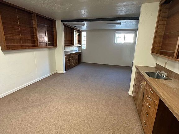Large office space, with waiting room, receptionist space, common work area with built ins, private office and bathroom. $900/month, water and trash paid by owner, power is metered and billed to tenant. Owner will cooperate with tenant improvements