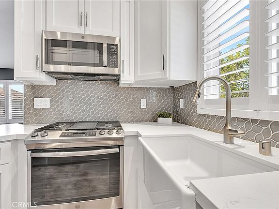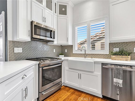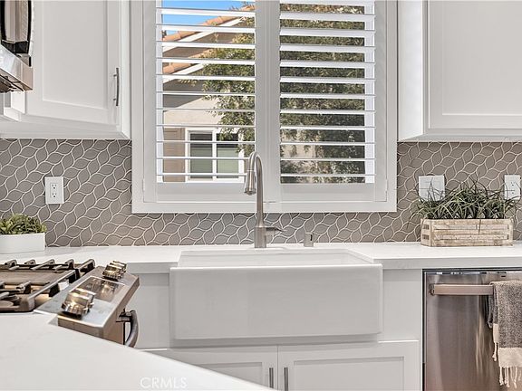 Welcome to this stunning upper-level condo located in the sought-after California Court Community in Mission Viejo. This light and bright two bedroom home features an open and inviting floor plan, perfect for modern living. The beautifully remodeled kitchen boasts white shaker cabinets, elegant quartz countertops, and a seamless connection to the living room area ideal for entertaining. A cozy fireplace adds warmth and charm to the family room as well. There is a spacious primary bedroom with vaulted ceilings and a generous walk in closet with custom built-ins. Additional conveniences include a private single car garage located just downstairs and a newer A/C and heater. Located near highly rated schools, restaurants and local conveniences, this home is perfectly situated to enjoy all that Mission Viejo has to offer.
