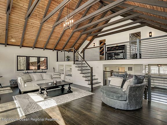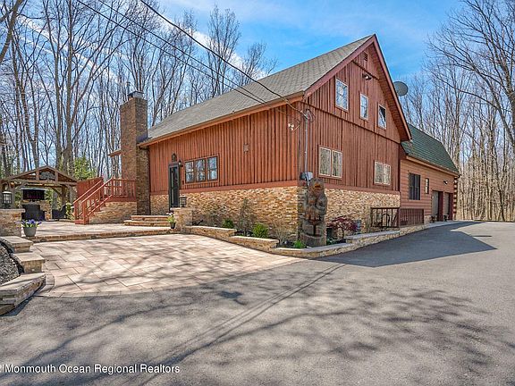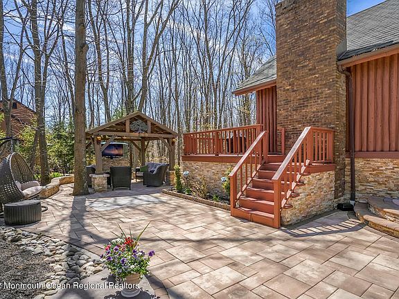 Extravagant and Chic Custom Built Log Home on 1.1 Acre leaves nothing to be desired. Could easily become 4-5 Bedrooms. Meticulously maintained and beautiful interior design. The upgrades throughout will satisfy your every need. From the private winding driveway, expansive 2-tier Paver Stone Patio, Cedar Gazebo w/Outdoor TV, Lighting +Furniture, Wrap around Deck Overlooking your private wooded yard, no expense was spared. Next you'll enter your Dream home and be swept away with it's elegance and charm. New Hardwood floors thru-out and the Gourmet Kitchen features custom cabinets, Granite counters +Breakfast Bar plus Gorgeous stone mosaic backsplash and Top of the Line SS Appliances. Let's talk about this awe-inspiring Vaulted +Beamed Cathedral Ceiling w/Large Windows to soak in your view from your Family Room. The Built-In Shelves and warm Fireplace w/Stone Wall adds a cozy feel and you won't want to leave home. The Vaulted and Beamed Primary Bedroom offers a NEW Luxurious Private Bathroom and Walk-In Closet the size of another bedroom. With capped Plumbing fitted for a 2nd Kitchen, a HUGE Exercise Room with French Door to Private Balcony AND direct access down to the Oversized Garage, This Suite has Mother-Daughter Potential! The lofted hallway overlooks the Grand Family Room and leads to the bedrooms w/NEW Jack-n-Jill Bathroom. The 1st Floor Bdrm was removed to allow for the expanded Dining Room which can now fit the largest of Gatherings. There is also a NEW Updated 1st Flr Full Bathroom and Spacious Laundry Room. Completing this home is the FULL Basement which offers high ceilings with Walk-Out Access outside to Driveway. Close to Shopping, Dining and nearby I-195/GSP/TPK access. Short drive to the Jersey Shore and Boardwalks. View the 3D Virtual Walkthrough and then Call Today For a Personal Tour!