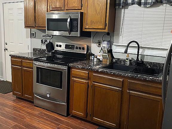 Private home sits on 2.7 acres. Tool shed, building, carport, and chicken coop. Fruit trees and 2 wells on property. Home has city water. Selling as is.