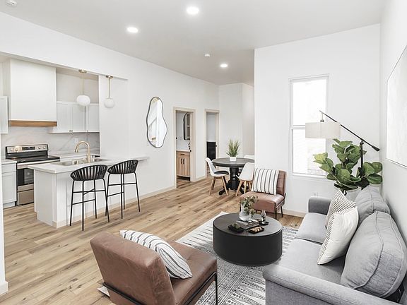 Discover the epitome of city living in this meticulously remodeled 2-bed, 1-bath home. Enter in and marvel at the tall 10-foot ceilings throughout the entire house, lending an airy feel to the open concept space. You'll be greeted to the bright window lit living room, eat-in dining room, and a white modern kitchen with a custom hood vent and a pantry closet. Off to the left of the living room is the main bedroom which features a cozy fireplace mantle; inviting warmth and comfort to this spacious room. The back of the house holds the character filled second bedroom, beautiful bathroom, laundry closet, and utility closet. Every inch has been rebuilt and redesigned with contemporary finishes, including a custom-tiled marble-like shower. Enjoy the convenience of everything being brand new, from the metal roof to the light-in pantry. This residence seamlessly blends style and functionality, offering a fresh start in a home that is entirely new.