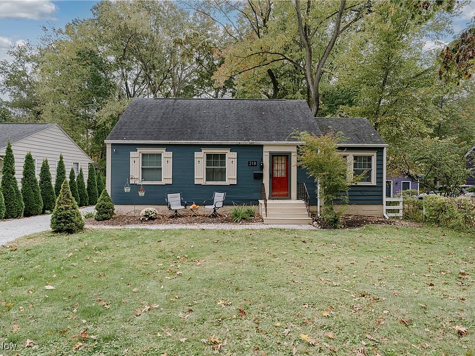 Welcome to 218 E School St – A Charming Cape Cod in a Serene Kent Setting! This delightful Cape Cod offers a perfect blend of classic charm and modern updates in a tranquil, quiet location. Step through the front door into a warm living room featuring gleaming hardwood floors and elegant French doors that lead to a bright and inviting sunroom—ideal for relaxing or entertaining. The kitchen is thoughtfully updated with granite countertops, stainless steel appliances, and a stylish tile backsplash, with a back door leading to an enclosed porch—perfect for morning coffee or casual meals. Two spacious bedrooms with hardwood flooring and a full bathroom complete the first floor, while upstairs, a generous third bedroom boasts its own ensuite bath, providing a private retreat. The partially finished basement offers an L-shaped rec room, laundry/utility area, and storage space, giving the home plenty of functional living and storage options. Enjoy a deep backyard for outdoor activities and gatherings, all while being less than a mile from the edge of the KSU campus. Shops, restaurants, and local amenities are just a short stroll away, making this home perfectly situated for convenience and lifestyle. Move-in ready and full of charm—this home is ready to welcome its next family!