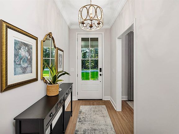 Welcome home to this beautifully landscaped 4-Bedroom, 3 Bathroom home with Office, Screened-in Back Porch, and Upgraded Features. Impressive vaulted ceilings in select areas, creating an open and airy ambiance throughout the home. Modern kitchen with high-quality stainless-steel appliances, combining style and functionality. The primary bedroom is on the main floor with plenty of shelving in closet and nice en suite. Upstairs is a spacious one bedroom with a full bathroom. Oversized two car garage. LVP flooring throughout the home with tile in the wet areas. Laundry room has plenty of cabinetry as well. Enjoy outdoor living in the screened-in back porch, ideal for relaxation and entertaining. This home offers a harmonious blend of comfort and elegance, catering to both your practical needs and aesthetic desires. Don't miss out on the opportunity to make it your own!