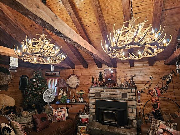 This rustic and charming 2 bedroom log cabin in Gaines may be just the camp you have been looking for. It offers a private lot and overlooks a small pond on an ATV friendly road. Inside you will find 2 bedrooms, an open great room with large fireplace and antler chandeliers, kitchen and dining area along with spacious sitting area. Located only 20 miles from Cherry Spring State Park and 23 miles to PA Grand Canyon! There is also a sunroom and 3/4 bath. Call today to set up your showing.