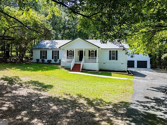 Enjoy the best of country living with this charming 3-bedroom, 2-bath ranch home nestled on 3.48 private acres in Newnan. A long driveway leads you to a peaceful setting where comfort and convenience meet. Step inside to find fresh interior paint and brand-new LVP flooring throughout. The inviting floor plan features a cozy family room, a bright kitchen, and three comfortable bedrooms, offering plenty of space for everyday living. Relax and unwind outdoors on the classic rocking chair front porch or entertain guests on the spacious back deck with a pergola, perfect for summer cookouts or quiet evenings under the stars. A fenced-in area provides a safe space for pets to play, while the detached 2-car garage with a bonus room above offers endless possibilities for a home office, studio, or guest suite. The garage is also extra deep, approximately 30 feet, making it the perfect spot to store a bass boat, ski boat, or other recreational toys. With its blend of privacy, charm, and usable acreage, this property is ideal for those seeking both space and convenience. Don't miss your chance to make this beautiful Newnan retreat your new home!