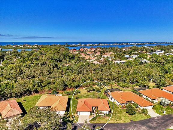 One or more photo(s) has been virtually staged. Laurel Hollow is a sought after Gated Community with gorgeous trees and only 93 homes in a NO Flood Zone and No CDD with the lawn care included making it maintenance free for easy living. This community is ideally located within approx. one mile to Nokomis Beach allowing for a nice walk or bike ride. There is a wonderful clubhouse on the lake with a lovely pool for you to relax and enjoy a swim. This home is situated on a large lot which can easily accommodate a pool. Most of all this home has had many NEW Improvements! A New Roof in 2024, New Hurricane Rated Windows and Slider in 2024, New HVAC system in 2023, New Hot Water Heater in 2024, New Stainless Appliances in 2023, New Enclosed Lanai in 2023 and Newly painted interior in 2025. The livingrm/dining area opens up to the spacious kitchen with granite and stainless appliances. The primary bedrm has a walk-in closet with builtins along with a remodeled bathroom with granite, dual sinks, tiled shower and whirlpool tub. The guest bedroom is situated privately with a remodeled bathroom. There is additional square footage in the newly remodeled Florida room which is perfect for a quiet space for reading or office work. This home is ready to move in with nothing to do! The Community is within walking distance to the Post Office, Publix, The Tiki Bar Restaurant and Starbucks along with so much more! Truly a Special Find for that Winter getaway or making it Home!