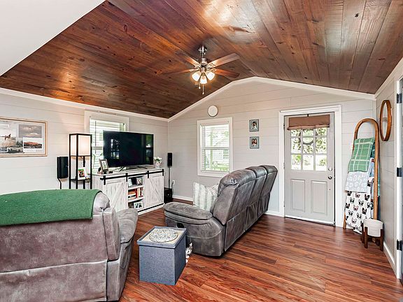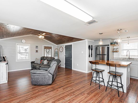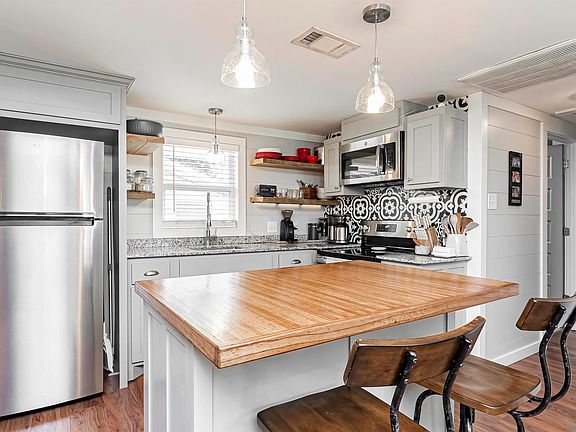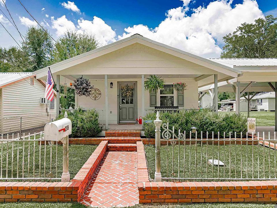 Absolutely move-in ready and located right in the heart of Denham Springs, this home is bursting with charm, character, and value—offering a much better option than renting! Every inch has been thoughtfully renovated with unique touches that make it stand out from the rest. Inside, you’ll find an open-concept layout with a stunning kitchen featuring granite countertops, a butcher block island, custom shaker-style cabinetry with built-ins like a spice rack, and a decorative porcelain tile backsplash. The living room is anchored by cathedral ceilings with center-match pine accents, shiplap walls, and stylish 5-panel doors throughout. High-end laminate flooring ties it all together with durability and warmth, while built-in shelving in the closets and laundry room adds smart storage solutions. Outside, the curb appeal is undeniable with a classic front porch made for rocking chairs and slow mornings. Out back, enjoy the concrete patio perfect for grilling or relaxing, plus a spacious two-car carport with plenty of room for parking or additional storage. With quality finishes, unique character, and a location that can’t be beat—this home is ready for someone who wants something special without breaking the bank.