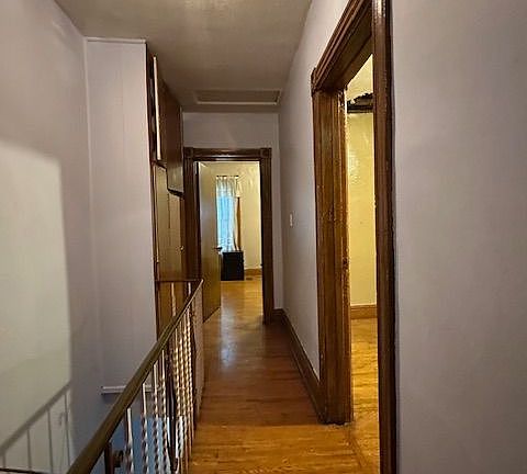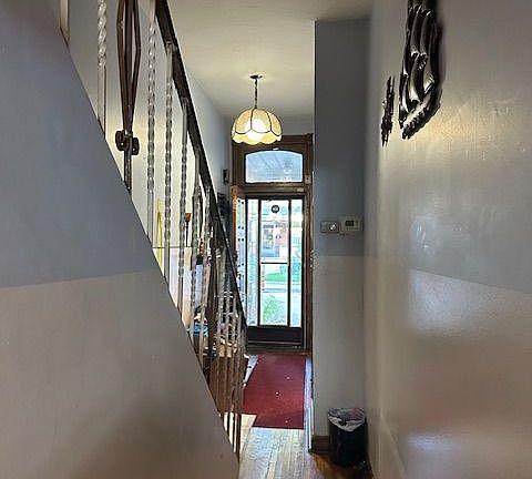 Deep lotDouble brick front exteriorLarge front porchInviting foyerTall windowsOriginal strip hardwood