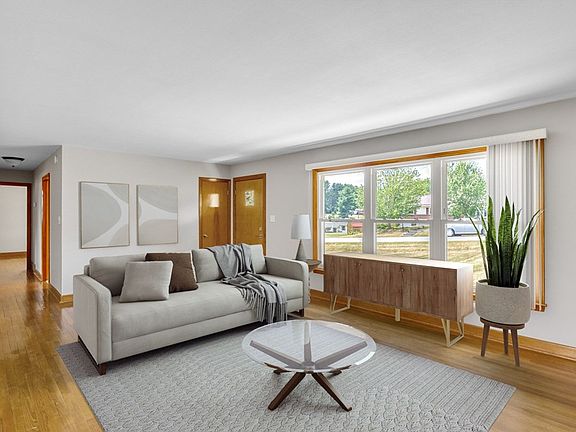 Welcome to this stunning mid-century modern brick ranch offering a unique blend of classic architecture and contemporary updates! Step inside and be greeted by the warmth of gleaming hardwood floors and loads of natural light. The den features a stunning stone fireplace that leads effortlessly into the breakfast area. Newly renovated, the kitchen boasts granite counters and all new appliances! A new barn door allows for an easy transition to the third bedroom or home office. Follow the hallway down to two other spacious bedrooms, one with ensuite bath, and a full hall bath. Downstairs, the partially finished basement offers additional living space – perfect for a family room, home office, or gym. Plenty of storage available as well! Laundry hookups are available on both the main level in the one-car garage AND in the basement. Nestled on a level lot, there's plenty of room for a garden. An open patio makes for a great grilling spot and two sheds allow for additional storage. Schedule