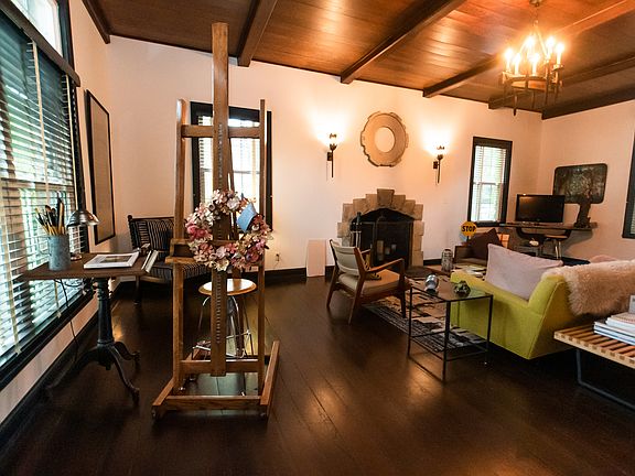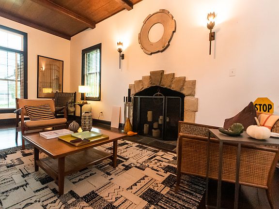 Gorgeous stone fireplaceStone cottageSpacious patioUpdated kitchenFormal dining roomArched doorwaysScreened-in back porch