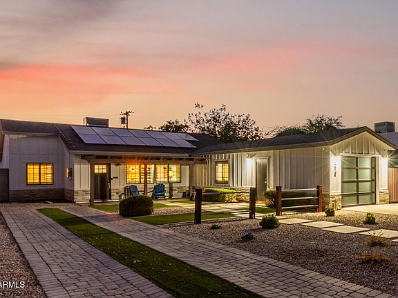Truly One of a Kind in the Heart of Historic Downtown Gilbert. This is not just another home it's a rare opportunity to own a piece of history with all the luxuries of modern living. First, this is the largest single level home in the entire Heritage District, offering nearly 2,200 sq. ft. of fully remodeled living space something you simply won't find anywhere else downtown. Second, while most homes in this neighborhood were built in the 1960s, this residence was constructed in 2016, giving you the best of both worlds: the character and charm of Historic Gilbert with the comfort and efficiency of newer construction. Third, the property sits on the most iconic tree lined residential street in Downtown Gilbert, where neighbors stroll beneath a canopy of mature shade trees and enjoy breathtaking views of the town's landmark Gilbert Water Tower. It doesn't get more "Gilbert" than this. Inside, the home impresses with soaring vaulted ceilings, custom trim work, elegant plantation shutters, and a show stopping chef's kitchen featuring waterfall quartz countertops, designer lighting, abundant cabinetry, and premium stainless steel appliances. The thoughtful split floor plan includes 4 spacious bedrooms, 3 bathrooms, and a private primary suite with spa like ensuite and patio access. While many homes in the Heritage District have limited outdoor space, this property offers a deep backyard with endless possibilities. There's more than enough room to add a future pool, detached guest studio, or home office. You could create a custom outdoor kitchen, a fire pit lounge, a sport court, or even a garden retreat the kind of space that gives you flexibility for years to come. The exterior is already designed for easy living with year round green turf front and back no mowing, no watering. Plus, owned solar panels bring sustainability and impressive energy savings. An oversized single car garage with cabinetry, workbench, and ample additional parking round out the functionality. Set in a no HOA neighborhood just 125 steps from award winning dining, shopping, and entertainment, this home combines historic charm, modern upgrades, and an unmatched location making it truly one of a kind in Downtown Gilbert. Homes like this simply do not come available often.