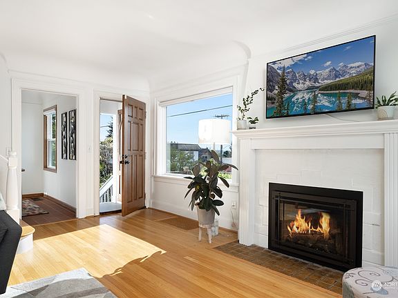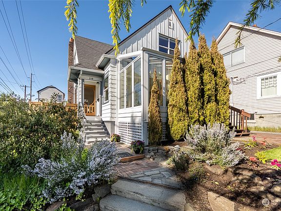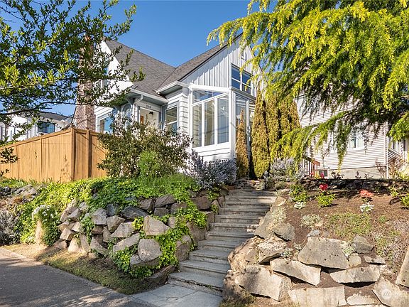 Perched gracefully above the street, this delightful 1926 home is sited on a sun-drenched level lot. Boasting a desirable floor plan featuring 3 bedrooms and 1 full bath upstairs, plus a main floor bedroom & additional full bathroom, a spacious kitchen & sunroom, this home is an easy yes! The full height basement offers plenty of headroom so it's comfortable for everyone. It's an excellent space for a home office/gym/flex room. Hedged and fully fenced for outstanding privacy, the yard offers endless possibilities for gardening and play. One car off-street parking with storage shed, plus opportunity to build a garage/DADU if desired. System upgrades include newer furnace (2019), newer gas fireplace (2020), and brand new sewer liner (2024).