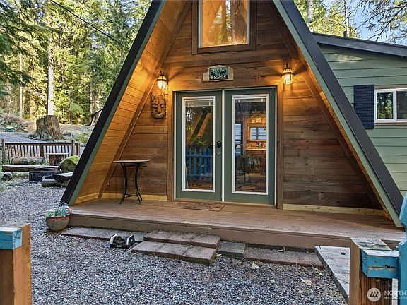 Classic A-Frame at the doorsteps of adventure!! This charming cabin comes fully furnished and features an updated bathroom, cozy sleeping loft and amazing outdoor spaces ready to relax and enjoy. Featuring a large firepit area, multiple sitting areas and ample privacy. Outback is your private dining patio and ample room for RV parking. With 2 driveways you'll have room for all your friends and all the toys! Located just moments from the entrance to Mt. Rainier National Park and close to hunting, hiking, fishing, and the ATV route. Paradise Estates offers 2 private lakes, a playground and covered picnic area. Come kick back and enjoy.