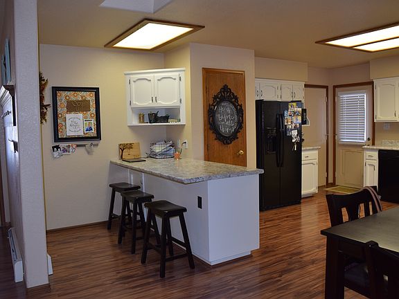 Great Ranch style home in Fruita. This home offers it all. Living room with vaulted ceiling and a gas fireplace. The kitchen is nicely updated with white cabinets and an island/breakfast bar. Split bedroom floor plan and the primary bedroom has a big walk-in closet. It is move in ready! There is a 2 car garage, RV parking, and a big fenced and sprinklered yard.
