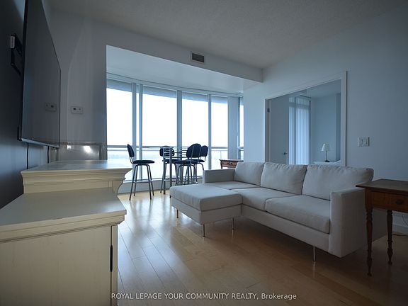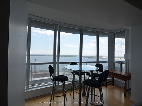 Enjoy This Spectacular, Unobstructed Direct South Facing View Of Toronto's Waterfront While Being Minutes Away From It All! This Luxurious Split Bedroom Floor Plan Has High Ceilings, Hardwood And Tile Throughout And A Generous Living Room Bathed In Light With A Delightful Wrap Around Balcony. Available Feb. 1.