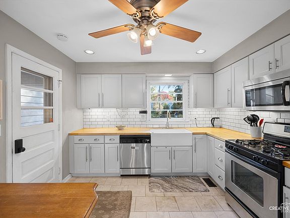 Discover this charming ranch home located at 218 Republic Road in Batavia. This home is perfect for anyone seeking a move-in-ready property! The fully updated kitchen boasts modern finishes, with a classic and trendy butcher-block countertop, stainless steel appliances and tile floor. The tasteful white trim over beautiful oak hardwood floors, large windows and neutral decor give the home a fresh feel. The full basement offers highly functional additional living space with a home office, recreation room, play room area, laundry room and second full bath with oversized walk-in shower. One of the standout features offered is certainly the expansive yard, which is accessible via the breezeway between the house and the 1+ car garage. The lot is nearly 200 feet deep offering endless possibilities for play or relaxation. You'll also find additional outdoor storage in the shed. Located in a highly desirable in-town location, this home is close to HC Storm School, Batavia High School, Memorial Park, Randall Road shopping and dining, and all the conveniences of downtown Batavia. Call for more details!