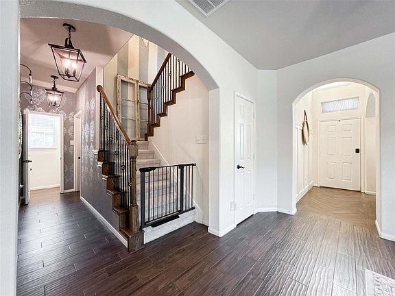 Welcome to 218 Rippling Creek Lane in Alvin, TX 77511! This stunning 4-bedroom, 3-bath home offers 2,193 sq. ft. of comfortable living space on a 5,506 sq. ft. lot. Featuring the desirable Charlie floor plan, this home greets you with a charming front porch and an inviting interior. The kitchen is a chef’s delight with maple cabinetry, bullnose granite countertops, a stainless steel sink, and a stylish diagonal tile backsplash. Beautiful tile flooring flows throughout the main areas, including the kitchen, breakfast area, utility room, and powder room. The spacious primary suite boasts a large walk-in closet and a luxurious bath with dual sinks and maple cabinets. With its thoughtful design and quality finishes, this home combines style and functionality perfectly. Don’t miss the chance to make this exceptional home in Midtown Park yours!