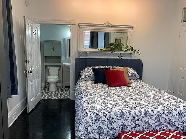 This is a beautifully decorated house with 5 furnished bedrooms three with private bathrooms and one with private entrance -- other bedrooms have a bath that is shared with one other person. Tenants will have access to shared space on first floor with kitchen and living room and laundry room access. This room is furnished and includes a flat screen TV with only streaming channels. This room also has a small refrigerator. There is no cable. All utilities are included: water, electric, gas & trash service are included and WIFI is free. The picture shows room #1 with private bath and room #5 that also has a private bath. The house is located in downtown Hampton and convenient to shopping and transportation.