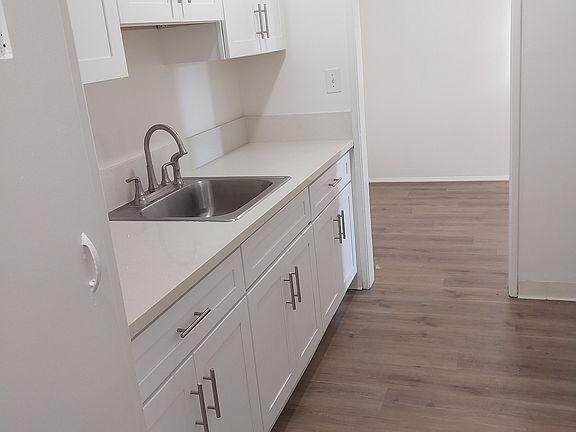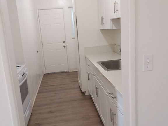 Quaint single story 1 bdrm 1 bath with private yard space, 1 car detached garage + 1 parking spot behind garage, laundry hookups in unit, sq feet is estimated. Unit features Newer white shaker cabinets w. quartz countertops in kitchen and vinyl wood flooring throughout. Unit has new white vinyl windows.