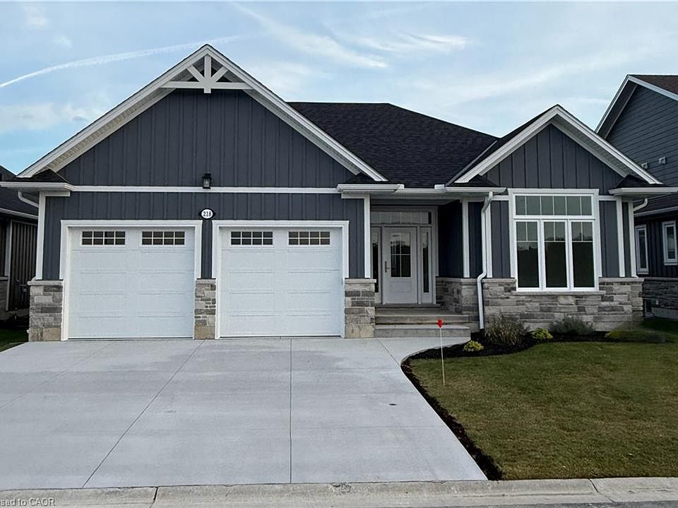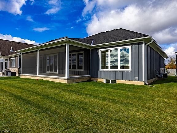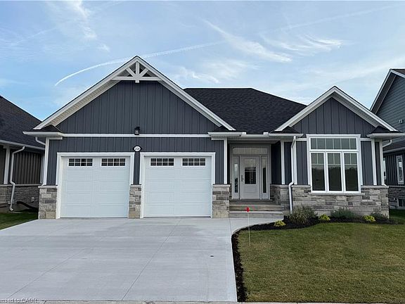Welcome to Living in Dover Coast – Port Dover's Premier Adult Lifestyle Community with golf, pickleball and access to a private waterfront area on Lake Erie. Introducing this beautifully crafted 1,700 sq. ft. bungalow thoughtfully designed and meticulously finished, this home offers modern elegance, functional comfort, and superior quality. Step inside to discover two spacious bedrooms, each featuring walk-in closets, and two full bathrooms, including a luxurious ensuite with a tiled shower, custom glass enclosure, and dual sinks. The welcoming foyer opens to a bright and airy living space with 9’ ceilings, enhanced by 10’ tray ceilings in the foyer, front bedroom, and living room—offering an elevated sense of space and style. The open-concept kitchen is a chef’s dream, complete with quartz countertops, a walk-in pantry with cabinetry and a frosted glass door, and an exterior-vented range hood. The oversized 96” sliding door and large windows flood the space with natural light, seamlessly connecting the indoors to the outdoors. Enjoy your mornings and evenings on the oversized screened-in back porch, the perfect spot for entertaining or quiet relaxation. The stone and Hardie board exterior, front porch and multi-point locking system front door provide curb appeal and peace of mind. Additional features include: Elegant stained oak “L-shaped” staircase, upgraded trim, and interior doors, 543 sq. ft. oversized double-car garage with openers and exterior keypad, main floor laundry for convenience, central vac rough-in, irrigation system (Tied into the golf course system), and basement exterior walls studded and insulated. This home blends upscale finishes with practical features, ideal for those seeking comfort, community, and quality in one of Port Dover’s most prestigious neighborhoods. Your next chapter starts here—schedule your private showing today.