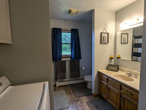 No viewings scheduled without approved applications. Well maintained single family ranch home on a quiet lot in the country featuring attached 2 car-garage, full basement and concrete patio out back. With farmland in front and farmland behind there is plenty of privacy. Recently painted 3 bedroom one bath house with fresh, easy to clean flooring. Includes fridge, stove, washer and dryer. Laundry is located in the large bathroom. Black top driveway with turnaround. Tenant is responsible for mowing, trimming and snow removal. Utilities are not included. House is on a private well and septic so there are no water or sewer bills. Oil heat, central A/C. Month-to-month lease. Tenant pays heat, electric and trash. Private well and septic so no water and sewer bills.