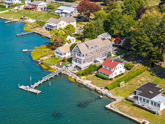 Sweeping views of Long Island Sound and the luxury of waterfront living await in this elegant, modern Colonial on the pristine shores of Jordan Cove. The epitome of gracious living, this beautiful four bedroom, four and one-half bath home is stunning in its design and in its unparalleled location. Spacious and bright, the 20' x 20' Great room, with a gas log fireplace, overlooks the deck and the sparkling water through triple panel atrium doors. The kitchen boasts custom white cabinetry, soapstone countertops, high-end stainless steel appliances, an island/breakfast bar, a tile backsplash, recessed and undermount lighting and a pantry. Built-in bookshelves and gleaming hardwood flooring adorn the library/office. A full bath with tile flooring completes the first level. On the second level, the Primary suite, with an updated luxurious full bath, opens to a private balcony and the splendor of panoramic water vistas. Two additional bedrooms, one with a beautifully appointed full bath, a dedicated laundry room, a sprawling loft area, and a third full bath complete the second level. On the third level, you'll find a 15' x 23' family room, a fourth bedroom and a half bath. Spectacular views, water access, brand new patio and walkway, an expansive and private boat dock, fresh interior paint, a 900 Sq.ft. two story carriage house, central air, 200 amp electric, a hot tub and a whole house generator make this property truly unmatched. Come on...Let's take a look inside!