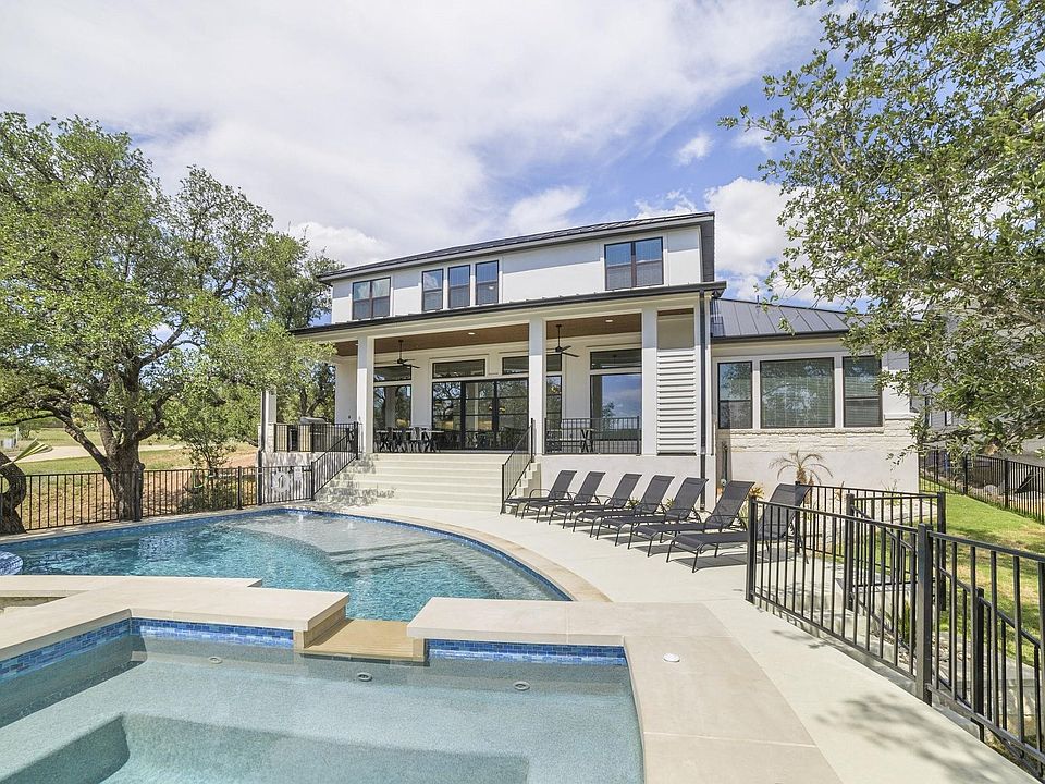 Welcome to Serenity Cove—a luxurious, fully furnished waterfront home on the coveted shores of Lake LBJ. Designed for effortless entertaining and refined relaxation, this exceptional 4,055 sf residence offers 5 spacious bedrooms, 5.5 designer bathrooms, and comfortably sleeps up to 16+ guests. Whether you're seeking a private family compound or a high-performing short-term rental investment, this property is turnkey and STR-ready. From the moment you step inside, you'll notice the impeccable craftsmanship and upscale finishes throughout—from wide-plank flooring and custom tilework to soaring ceilings and thoughtfully curated furnishings. The chef’s kitchen is a showpiece, featuring a 6-burner gas stove with griddle, double ovens, an expansive island. Outdoors, enjoy resort-style living with a private pool and elevated spa—set against the serene backdrop of a quiet cove. Lounge poolside, dine al fresco, or launch kayaks just steps from your door. A private community boat ramp is conveniently located next door for boating enthusiasts. Inside, multiple suites offer luxe accommodations, while custom-built bunk rooms provide fun and comfort for younger guests. Dedicated game area featuring arcade classics, ping pong, pop-a-shot, and more. Ideally located just minutes from The Legends Golf Course, Longhorn Cavern State Park, and Perissos Vineyards, Serenity Cove offers a rare blend of luxury location and lifestyle in the heart of the Texas Hill Country!