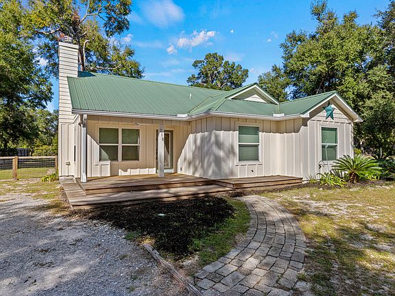 3 bed 2 bath Florida cottage situated on approximately one half acre with a great location in the rapidly growing Freeport area. Located off Hwy 331, this home is close to shopping in Freeport and only about 15 minutes from the beach, and literally a 1 minute drive to the Publix, shopping and more. The home features include a wood-burning fireplace and vaulted ceiling in the living area, ceramic tile floors in living room, kitchen, dining and bathrooms, also new flooring in bedrooms. This home has a nice split floor plan with the master bedroom and bath located at the rear of the home overlooking a wooded area. Glass sliders in the main living area let in lots of light and open onto a brick paver patio! Lots of space in the backyard and front yard for family and friends.